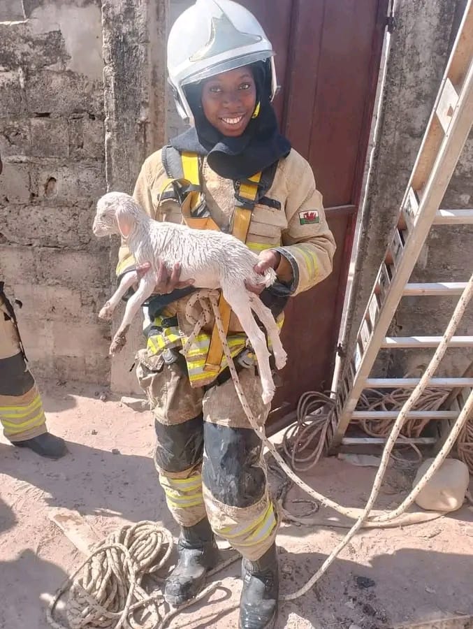A firefighter with the Gambia Fire and Rescue Service (GFRS), Fatou Sowe, has been praised after carrying out a daring rescue of a lamb trapped in a deep well in Basse.