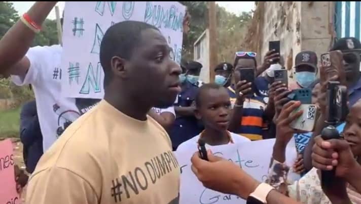 The protest, led by Baboucarr Jeng and Saffiatou Joof, saw demonstrators march with placards and chant: “enough is enough, no more dumping.”