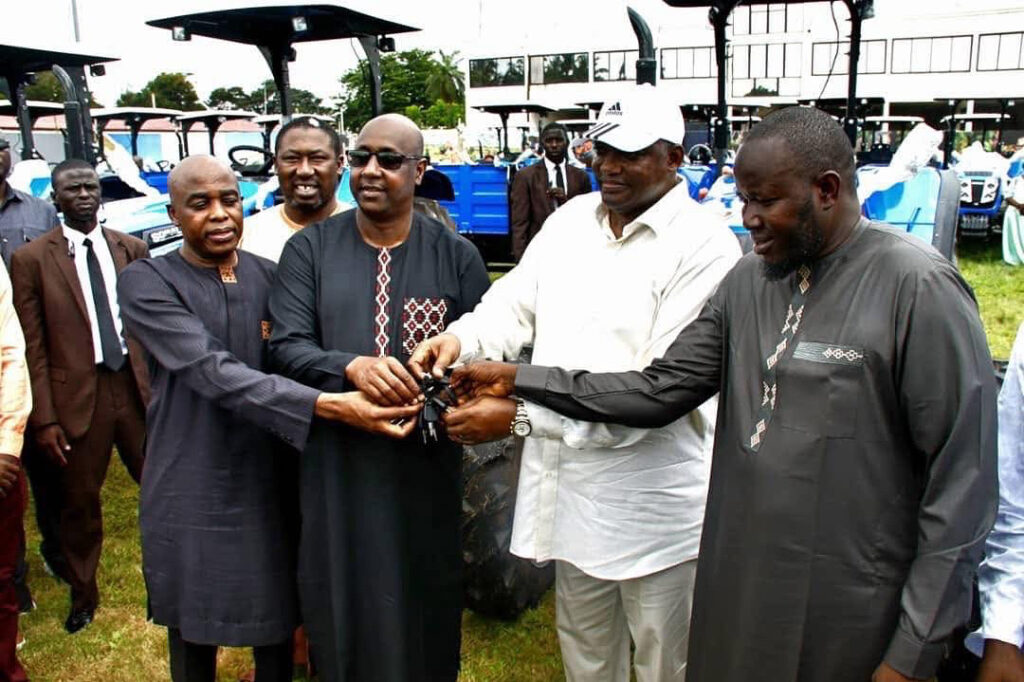 President Adama Barrow on Saturday presented 60 tractors to Gambian farmers as part of a joint funding initiative between the government, farmers and Yonna Agribusiness, a subsidiary of the Yonna Group.